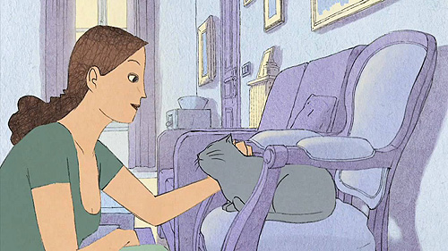 Un gatito negro y un gato mayor gris (ambos animados) nos sirven de guías en la película, que empieza en un salón intelectual de finales del XIX.