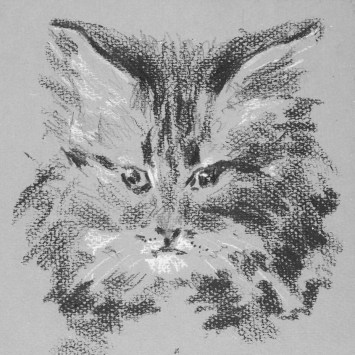 Luego otras dos, en color, con un gato negro adulto, ¿es el mismo gato que el anterior? Y la última, que debió ser publicada en un periódico, con un gato gris de pelo largo. También sabemos que el gato representado con un zorro se llamaba Pituso.