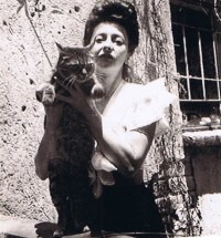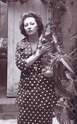 En una la vemos vestida con una blusa blanca presentando a un gato atigrado. Por el peinado y el entorno, la foto debió ser tomada en la década de los 30 y nos atrevemos a pensar que en España. Hay otra posterior donde está sentada ante un cuadro sujetando a un gatito negro.