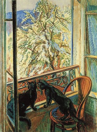 Por estas obras deducimos que la familia tuvo por lo menos dos gatos negros, otro negro con pechera blanca, un rubio con manchas blancas y un blanco. Quizá fuera su mujer, Yvonne Deltreil, la que amaba a los gatos.