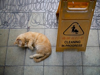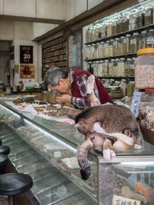 Aquí añadiremos que Hong Kong es un lugar muy especial en lo que a gatos se refiere. En la mayoría de ciudades modernas hay leyes estrictas sobre la presencia de animales en tiendas, pero ni en la península ni en las islas de esa región se regula la presencia de los gatos, y campan alegremente en tiendas e incluso en restaurantes. Por eso se le ocurrió a Marcel Heijnen hacer una serie de fotos e incluirlas en el libro «Hong Kong Shop Cats» (Los gatos de las tiendas de Hong Kong), publicado en 2016 por Asia One Publishing. Además, las fotos se expusieron en la Blue Lotus Gallery en abril de ese mismo año.