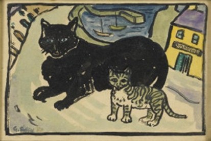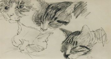 También incluimos retratos y estudios de gatos, así como los curiosos dibujos «Gato y pájaro» y «Siesta de gato». Gerard Dillon pintó más de cien obras, de las que diecisiete contienen gatos, una proporción pequeña, es verdad. Pero algo nos dice que los gatos gustaban a este pintor.