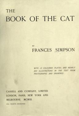 En 1903, la Srta. Frances Simpson publicó «The Book of the Cat» (El libro del gato),
