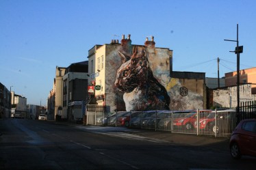 Un mes después, en mayo de 2013, el artista volvió a pintar un gato de grandes dimensiones en la pared lateral de un edificio en Bristol, pero no hemos podido encontrar más información. Viendo el edificio, parece ser un gato más pequeño que el parisino.