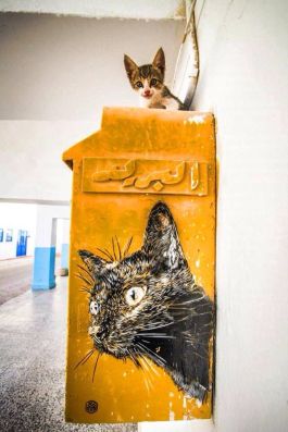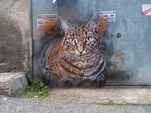 El grafitero C215, de verdadero nombre Christian Guémy, centra su arte en retratar a personas mayores, refugiados, mendigos, seres que viven en la calle y suelen ser ignorados. Entre ellos se encuentran los gatos. Probablemente sea