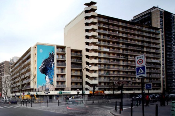 En abril de 2013 pintó un asombroso mural de 25 metros de altura representando un gato en la fachada lateral de un edificio del bulevar Vincent Auriol de París. El Ayuntamiento del distrito, que ya había encargado obras a famosos artistas callejeros como Shepard Fairey e Inti, entre otros, consideró que había llegado el momento de hablar con C215. En una entrevista dijo: «Decidí hacer un gato sencillo, me gustan las cosas sencillas. Es mi estilo de vida. Quería que el gato se convirtiera en el gato del barrio, que la gente se sintiera feliz al descubrirle saliendo del metro, que le quisieran. Ojalá pronto empiecen a decir: ‘Quedemos donde el gato'».
