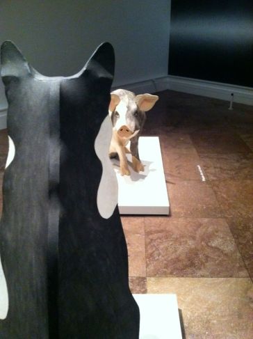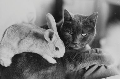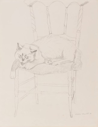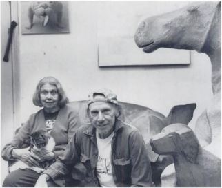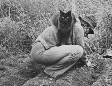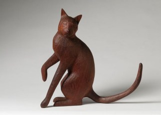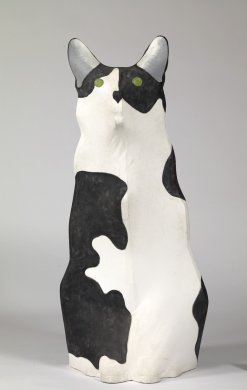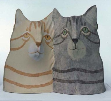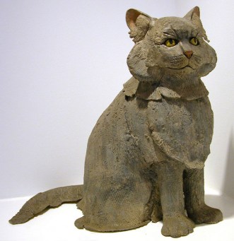 Anne Arnold esculpió y pinto muchos animales, cerdos, conejos, camellos, caballos, puercoespines y gatos. Quizá estos últimos no fueran los que más reprodujo, pero sí podemos estar seguros de que los amaba. Basta con ver las fotos incluidas en esta entrada para darse cuenta. Reprodujo a Christy, a la que vemos con ella en 1987, en varias ocasiones. También está la maravillosa foto del gato Stubbs con un conejo, pero probablemente la que más demuestre su afecto por los gatos es una de 2001, realizada en su piso de Nueva York, donde se la ve sentada con un gato en el regazo al lado de su compañero Bob Brooks, ambos rodeados de esculturas de Anne.