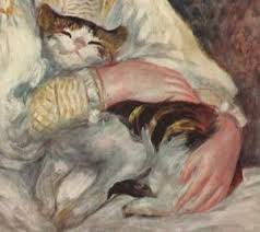 Se sabe con certeza que Renoir, ya mayor, solía pintar con un gato en las rodillas, probablemente para darle calor, como lo demuestra el pelo de gato mezclado con la pintura en sus últimos cuadros, lo que también sirve para autentificar los lienzos al no estar firmados.