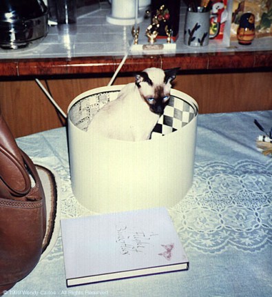 Además de una precursora de la música electrónica, por algo la llaman «la madrina de los sintetizadores», también es una apasionada de los gatos siameses. Sus primeros gatos fueron Nago, su madre Pica y su primo Subi, el mayor de los tres. Creó una maravillosa web (http://www.wendycarlos.com/photos2.html#critters) en la que dedica secciones a sus gatos, sus perros y, claro está, a todos sus sintetizadores. Describe con mucha emoción la muerte de Pica a los quince años, y de Nago, que se fue demasiado joven. Sin embargo, Subi (Subito) vivió hasta los veinte años. Después de Nago llegó Pandy (Pandora), una siamesa Chocolate Point como Pica, muy inteligente, despierta e interesada en todo, y al poco, Charly, que ya tenía cinco meses y no era muy listo. Pero eso tiene una explicación: Charly, un siamés de marcas perfectas, había sido comprado por una pareja que no tenía ni idea de gatos y les pareció demasiado activo. Cuando llegó al loft de Wendy, tenía mucho miedo y no dejaba que nadie le tocara.