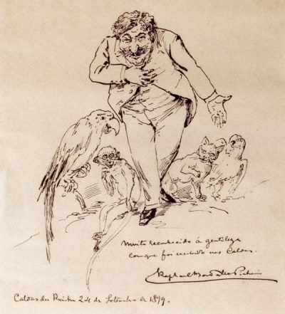Rafael Bordalo Pinheiro nació en Lisboa el 21 de marzo de 1846, concretamente en el Chiado, en el seno de una familia de abogados y artistas. Fue el tercero de doce hermanos, y desde pequeño hizo prueba de una sorprendente perspicacia irónica, además de sentirse atraído por el teatro y el dibujo. Cuando empezó a estudiar en la Academia de Bellas Artes de Lisboa, no tardó en darse a conocer entre sus compañeros por sus caricaturas de los profesores.