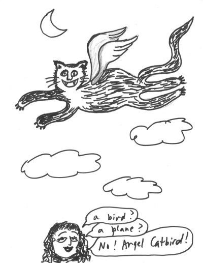 Con el tiempo, Margaret Atwood se interesó cada vez más por la conservación de las aves y empezó a sentirse culpable por los múltiples regalos que sus gatos le habían traído. Con su típico humor, menciona que uno de ellos solo le dejaba las entrañas. Así es como nació el personaje de Angel Catbird, una mezcla de ser humano, gato y búho con un lógico conflicto de identidad, ¿me como el gorrión o lo salvo? Entiende ambas posibilidades. En palabras de la autora: «Es un dilema carnívoro de dos patas con alas».