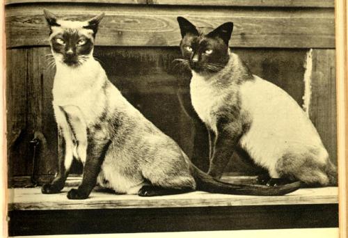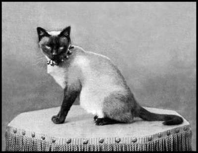 Se considera que todos los siameses europeos de pura raza son descendientes de unos once gatos importados de Siam en la década de los ochenta del siglo XIX. Quedan muy pocos documentos gráficos de estos primeros gatos, quizá porque no fueron fotografiados o las fotos han desaparecido. Aquí podemos ver a Tiam O’Shian IV, traído de Oriente por la Sra. Vyvyan en 1886. Y al campeón Wankee, el primer gato siamés en ganar un concurso. Ah Choo fue otro de los precursores. Hemos encontrado la foto de Cora, una hembra, pero no sabemos si fue una de las primeras en llegar. Por lo que hemos leído en páginas de criadores, el aspecto físico de los primeros siameses difería mucho de lo que se considera hoy como «perfecto». Eran más redondos, tenían «mofletes» y quizá fueran un poco más cortos de patas.