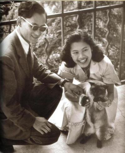 En las dos fotos del Rey componiendo una pieza al piano realizadas por el fotógrafo Dmitri Kessel, vemos a un espléndido siamés con cascabel. Según un periódico tailandés, las fotos fueron hechas en la residencia de la familia real tailandesa en Lausana, Suiza, en 1944.