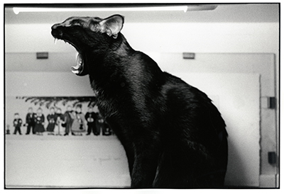 Hemos traducido la presentación de Xavier Canonne, director del Museo de la Fotografía: «Cuatro milenios en su compañía no han bastado para que el gato se harte del hombre a pesar de los tormentos que este no ha dejado nunca de infligirle a lo largo de una paciente relación que le ha transformado hoy en día en ‘animal de compañía’; cuatro mil años durante los que el felino ha observado al hombre con suma paciencia, acercándose a él realizando círculos concéntricos pese a las matanzas, las hogueras, la brujería, los golpes y el abandono, presintiendo a través de su tenacidad que merecía probar una aventura con ese otro mamífero, y que para algunos de estos se convertiría en indispensable».