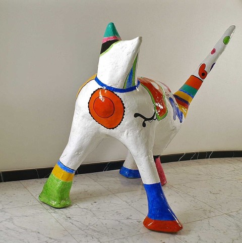 La primera exposición abrió sus puertas el 9 de febrero del año pasado en el Centro Cultural De Markten, en Bruselas. Podía verse un sinfín de cuadros, dibujos, objetos, joyas, todo dedicado al gato. Por ejemplo, la estupenda escultura de Niki de Saint-Phalle o la enorme pieza de Wang Du y cerámicas de Eric Croes, además de postales y fotografías de los gatos de los organizadores.