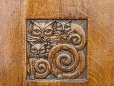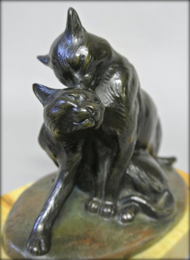 Sin embargo, de todos los artistas que usaron el gato en esos cincuenta años, creemos que el más atrevido y sorprendente fue el francés François-Rupert Carabin. Estudió escultura, fue orfebre, ebanista y fotógrafo, y está considerado como uno de los grandes ejemplos del Modernismo. A partir de 1890 se dedicó sobre todo al diseño de muebles únicos, decorados con desnudos femeninos y animales simbólicos, sobre todo gatos. También incluimos una muestra de su trabajo de orfebrería.