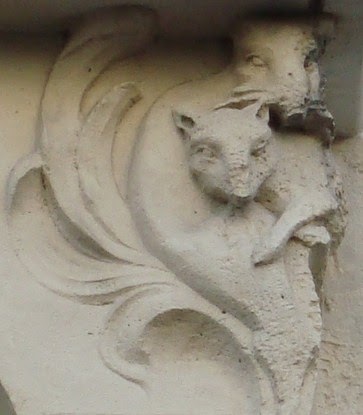 Y para acabar, siempre en el Art Nouveau, dos ejemplos de una decoración en un edificio del arquitecto Jean Falp, que diseñó varios edificios ente 1899 y 1907 únicamente en los distritos XI y XII de París. Al igual que Carabin, tendía a decorar los portales con figuras femeninas de las largas cabelleras, gatos y algún que otro pájaro y ratón.