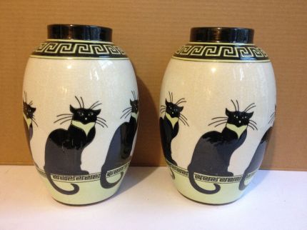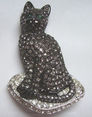 Numerosos artistas del Art Déco se sirvieron de la figura del gato para decorar todo tipo de piezas y joyas. Respondía perfectamente a lo que buscaban: líneas sensuales, misterio, belleza. Abundan las lámparas y figuras de Max Le Verrier, premiado con una Medalla de Oro en la famosa exposición de 1925. También están los famosos broches de la fábrica Swaroski, fundada por Daniel Swartz (que se cambió el apellido por Swaroski) con otros dos socios en 1895, después de patentar en 1892 una máquina de corte eléctrica que facilitaba la producción de objetos de vidrio.