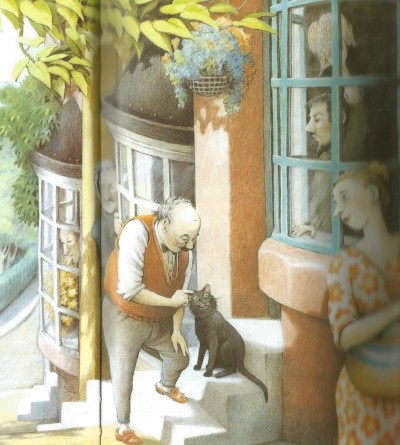 «Six Dinner Sid» es un cuento muy corto escrito e ilustrado por Inga Moore en 1990. Ganó el Premio Smarties de ese mismo año y ha sido traducido a varios idiomas. La editorial Vicens-Vives lo publicó en castellano en 2003 con el título «Sixto seis cenas», y el gato ya no vive en la calle Aristóteles, sino en la calle Mambrú. Suponemos que las historias deben adaptarse, aunque Sid es un gato británico de cabo a rabo. Se nota a la legua. Tanto la calle Aristóteles como la plazoleta Pitágoras son de lo más británicas.