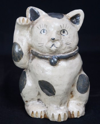 Una leyenda cuenta que en la era Edo, en el siglo XVII, la gran época de los señores feudales, había en Tokio un templo en muy mal estado donde vivía un pobre monje que, a pesar de tener poco para llevarse a la boca, lo compartía todo con su gata Tama. Un buen día, Naotaka Ti, un señor feudal de gran importancia, se vio sorprendido por una terrible tormenta en los alrededores del templo. Vio que una gata blanca rabicorta, con manchas negras y marrones, levantaba la pata como indicándole que se acercara. Asombrado, se atrevió a dejar el árbol bajo el que se había cobijado para ver de cerca a tan singular felino. En ese mismo momento, un rayo cayó sobre el árbol partiendo la enorme rama bajo la que se resguardaba. El señor reparó el templo, y el monje y Tama jamás volvieron a pasar hambre. Así nació el maneki-neko.