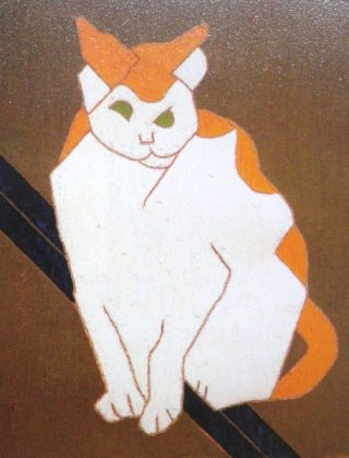 De los once cuadros que hemos escogido para esta entrada, solo uno nos parece anterior al periodo “moderno” del pintor. Todos los demás, a pesar de los trazos en apariencia sencilla, están llenos de vida. Estamos seguros de que la gata blanca tumbada está embarazada. Otros gatos pueden parecer graciosos e ingenuos, pero esa apariencia esconde un don de observación parecido al de un científico, algo que quizá aprendió durante su estancia en la isla de Sajalín.
