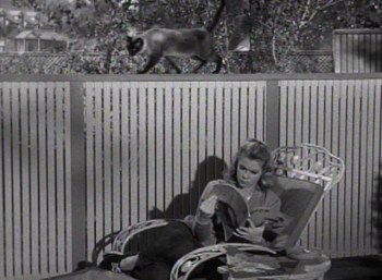 Elisabeth Montgomery tenía un gato siamés llamado Zip Zip y parece ser que trabajó en los dos primeros episodios que mencionamos aquí. Eso explicaría la actitud de la actriz tumbada en el suelo del plató, sin zapatos y abrazada a un siamés que no parece estar nada incómodo. En otra foto aparece sentada al lado de un gato rubio. Nos atrevemos a afirmar que a Elisabeth Montgomery le gustaban los gatos.