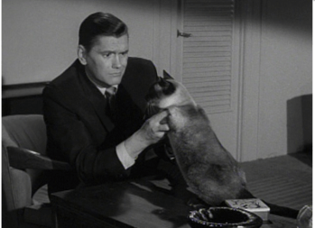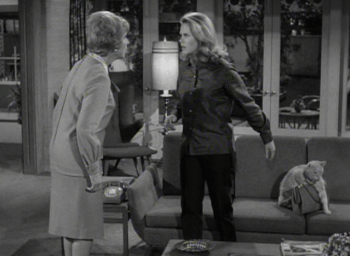 El primero, emitido el 21 de enero de 1965, se tituló “The Cat’s Meow”, traducido como “El maullido del gato”. Darrin debe entrevistarse con una guapa clienta de la agencia, y su jefe, el Sr. Tate (el inefable Larry White) le prohíbe decir que está casado. Cuando un siamés aparece inesperadamente, Darrin está convencido de que Samantha se ha transformado en gato para espiarle. Como pueden imaginar, sigue una serie de situaciones cómicas y Darrin acaba por descubrir que el gato es eso, un gato siamés.