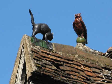 En el tejado de una de las casas más antiguas de la capital de la Borgona, Dijon, construida en 1483 por el mercader pañero Guillaume Millière y su esposa Guillemette, vemos a un gato y, enfrente, un soberbio búho. El edificio, declarado monumento nacional, es ahora un restaurante, y el Ayuntamiento se encargó de restaurar a los dos animales para que recuperaran todo el esplendor de antaño. El animal fetiche de la ciudad es la lechuza. De hecho, si pasan por Dijon, no olviden visitar una pequeña representación del ave en una de las paredes exteriores de la iglesia de Notre-Dame.