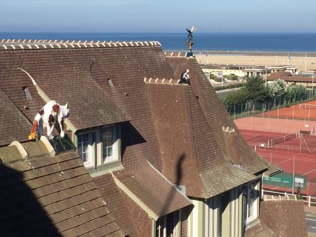 También hay un gato en el tejado del hotel “Normandy”, en Deauville, Normandía, antaño la ciudad donde la aristocracia francesa iba de vacaciones. Luego llegaron los hoteles y el casino, los turistas adinerados y, posteriormente, el famoso hipódromo de la Touques.