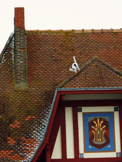 Erigidas en la cima de los tejados, las tejas decorativas son un elemento y un símbolo. En su origen servían para reforzar la impermeabilidad de la estructura, y poco a poco se convirtieron en un elemento de decoración. Su presencia en los tejados de Occidente remonta al siglo XI; entonces no era más que un sencillo recipiente redondo de barro cocido, como se ve en alguna miniatura o en la famosa tapicería de Bayeux. Luego, en el siglo XIV se empiezan a utilizar piezas esmaltadas y con policromía, pero siguen siendo redondas para ofrecer menos resistencia al viento.