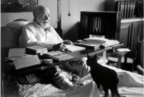 El pintor Henri Matisse amaba a los gatos y a las palomas. Existen numerosas fotos suyas con Minouche, Coussi o La Puce, los tres gatos que tuvo cuando vivió en la villa “Le rêve”, en la Costa Azul. Minouche era un atigrado con una “M” dibujada en la frente y el pintor solía decir: “Eme de Matisse”. La Puce, que significa “La pulga”, pero también “La pequeña”, era negra y a menudo le acompañaba cuando no podía levantarse de la cama. Coussi era el más joven de los tres, quizá un hijo de La Puce, ¿quién sabe?