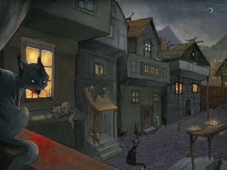 El extraño grupo abandonó Ulthar esa misma noche; jamás les volvieron a ver. Y también esa noche desaparecieron todos los gatos del pueblo. No quedaba ninguno, ni pequeños ni grandes, ni negros, grises, atigrados, amarillos o blancos.