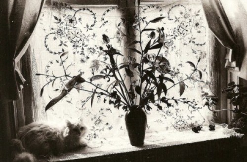 Puede que nos equivoquemos, pero nos da la impresión de que el gato fotografiado con la actriz es el mismo que el fotógrafo tiene en su regazo en la foto de Marc Gantier, o en sus hombros en 1988, y también es el de la partitura e incluso el gato pensativo en la mesita, sentado al lado de la cámara. El gato sin nombre del fotógrafo.