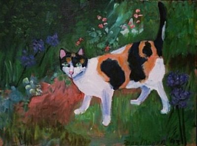 La artista Fran Moyer tenía una amiga llamada Margaret Reynolds que contaba lo siguiente: “Fran y yo nos hicimos amigas en 1938, cuando estudiábamos en el Instituto de Artes Manuales de Los Ángeles. Once años después, en 1949, yo vivía en un minúsculo apartamento de San Francisco. Fran estudiaba en la Universidad de las Artes de California, en Oakland. Me escribió diciendo que me faltaba un gato y que me había encontrado uno. Le contesté que no podía cuidar de un gato y que, además, tenía pirañas en el lavabo. A los pocos días apareció con el Tomcat (Gato macho), al que veo desde donde estoy”. (Boston 2008)