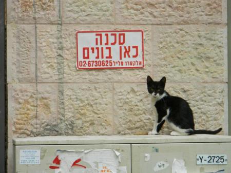 Ciudad Santa para tres religiones, judía, cristiana y musulmana, Jerusalén vuelve a verse dividida por un tema que nada tiene que ver con creencias religiosas, sino con gatos. Se calcula que en Israel hay casi un millón de gatos callejeros, una de las densidades más elevadas del mundo. Nunca se ha realizado un estudio serio sobre el número de gatos callejeros en Jerusalén, pero las estimaciones oscilan entre cien y doscientos mil por 865.700 habitantes humanos en un área de 125,1 kilómetros cuadrados.