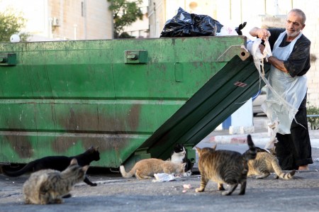 Hasta ahora, gran parte de la población felina de la ciudad se alimentaba en los cubos de basura abiertos en las esquinas, pero están siendo sustituidos por contenedores soterrados dejando a los gatos sin una de sus principales fuentes de comida. Moshe Lion, el primer alcalde de Jerusalén de ascendencia sefardí, ocupó el cargo el 4 de diciembre de 2018 y a finales del pasado enero anunció que la municipalidad gastaría cien mil shekels (el equivalente a algo más de 27.000 euros) anuales en la compra de comida de gatos para repartirla en comederos autorizados.