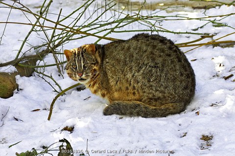 Se expresan como los gatos domésticos y ambos sexos marcan el territorio con orina, dejando heces en puntos expuestos, rascándose la cabeza contra rocas o árboles, y haciéndose las uñas.