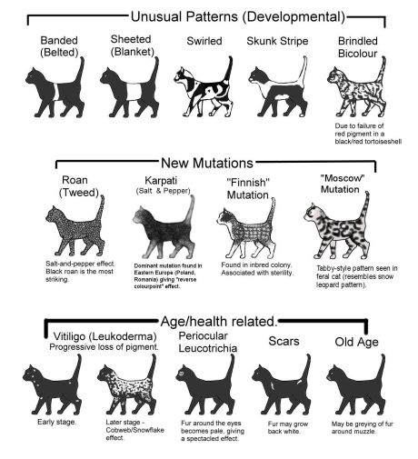 En 2014 hicieron su aparición unos extraños gatos blancos y negros en la región de los Cárpatos, en Hungría, Polonia, Ucrania, Eslovaquia y Rumanía. Tienen el rabo, la parte inferior de las patas, las orejas y la nariz de color blanco plateado con el cuerpo generalmente negro y alguna que otra mancha blanca. Al nacer son de un color claro que se oscurece a medida que crecen. En 2017, un gato de Romford, Gran Bretaña, nació con ese mismo marcaje. A pesar de haber sido diagnosticado con vitíligo, encaja más con la mutación karpati (un gen dominante). La mutación puede ocurrir en un gato de otro color, pero es más pronunciada en los negros.