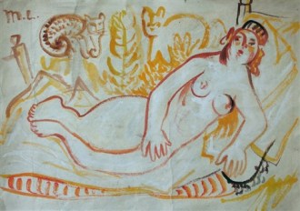 Desnudo (Alexandra Tomilina) con gato (Larionov)