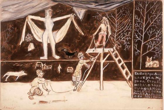Diseño escénico para «El gato, el gallo y la zorra» (Larionov)