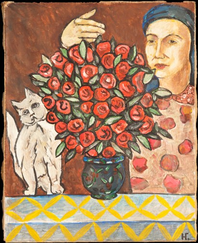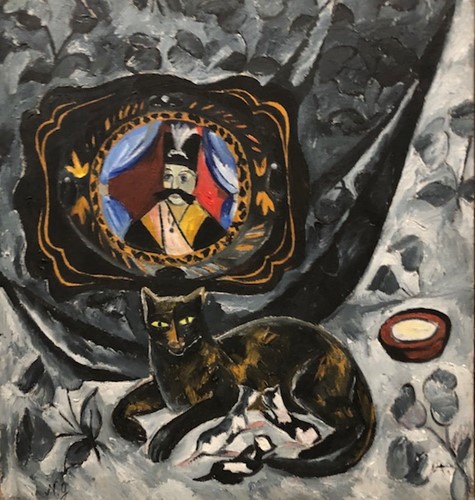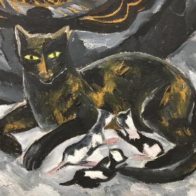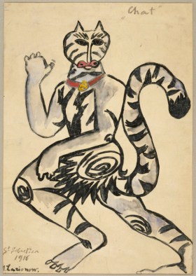 Por las fechas de los cuadros de los dos artistas, parece ser que incluyeron gatos en sus obras antes del año 1915, cuando vivían en Moscú, en la época previa a su trasladó a Lausana y luego a París. La única excepción quizá sea “Desnudo con gato”, pintado después de 1917, en el que retrató a Alexandra Tomilina, su modelo durante muchos años antes de convertirse en su segunda esposa. ¿Dejaron de tener gatos en París?