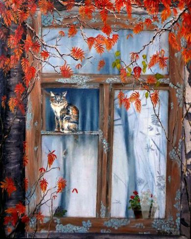 Ventana con gata (Goncharova)