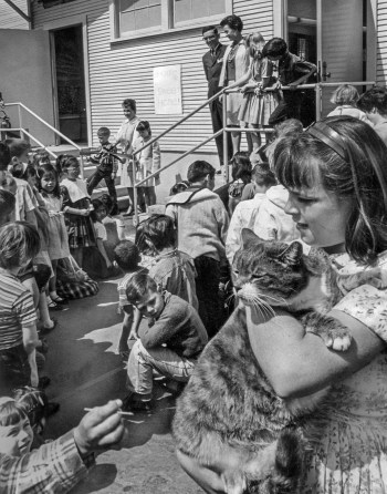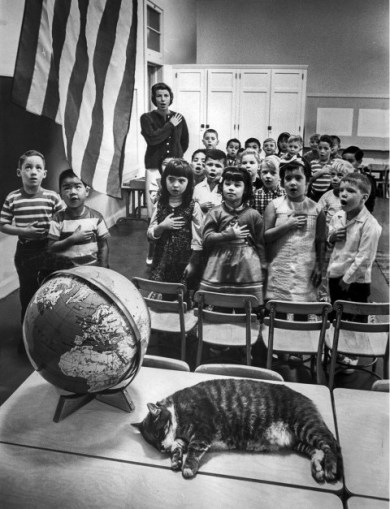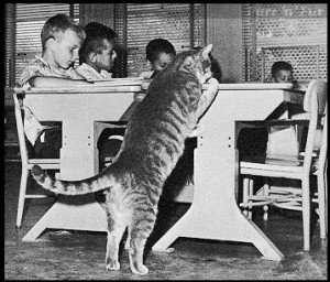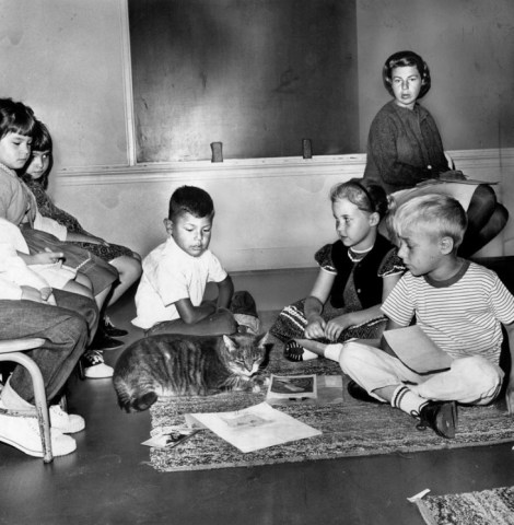 Un buen día de 1952 apareció un gato en el aula 8 de la escuela primaria “Elysian Heights” (Altos Elíseos) de Echo Park, un barrio en pleno centro de Los Ángeles conocido por ser el hogar de músicos, actores y directores de cine como Frank Zappa (https://gatosyrespeto.org/2018/02/22/gatos-el-maestro-y-frank-zappa/), Steve McQueen, Shia LaBeouf o John Huston, entre otros. En los años cincuenta, Echo Park aún no tenía su célebre zona de moda, ni tampoco estaba tan densamente poblado; actualmente cuenta con más de 43.000 habitantes.