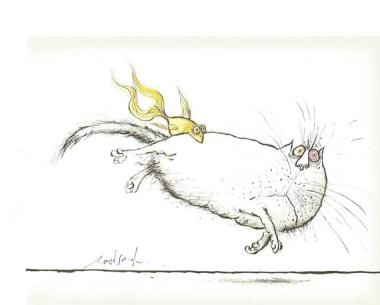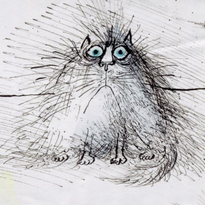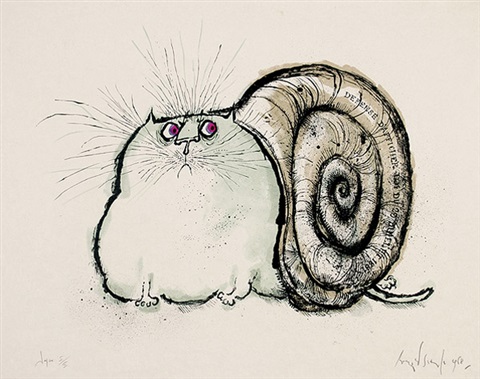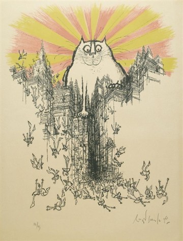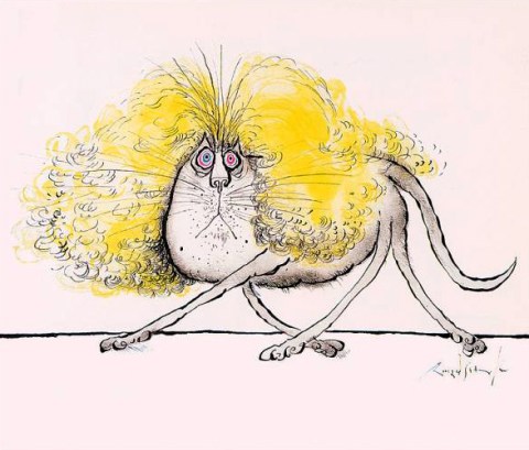 Se instaló en París en una residencia de estudiantes y empezó a dibujar gatos (entre otras cosas). Seis años después, con 47 años, casado de nuevo con Monica Koenig, una pintora y diseñadora de joyas y decorados teatrales, y con numerosas viñetas publicadas en la revista “The New Yorker” y artículos en “Holiday”, dedicó toda una exposición en Saint-Germain-des-Près a sus extraños gatos. No son adorables, no dan ganas de abrazarlos; más bien son gatos con sentimientos humanos, individuos inseguros, llenos de dudas, caricaturas humanas en la piel de un gato.