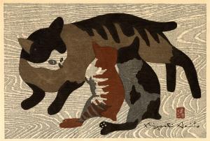 En 1951 fue galardonado en la Bienal de Sao Paulo por el grabado “Mirada tranquila”, en el que se ve a un gato hierático. En el mismo certamen también fue premiado su compatriota Tetsuro Komai por un aguafuerte, algo que dejó atónito al mundo artístico japonés, que siempre había despreciado todo lo referente al “sosaku hanga”. De golpe le empezaron a llegar pedidos de Occidente. En 1956 expuso en varias ciudades estadounidenses. El año siguiente viajó a París, Nueva York, Australia, India y Canadá para mostrar sus trabajos.