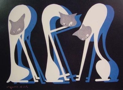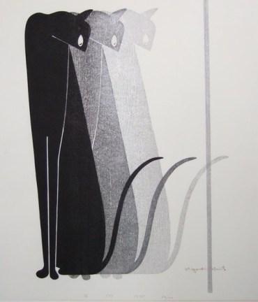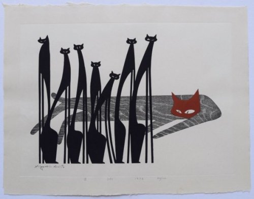 Sus temas eran muy variados, desde edificios, paisajes campestres, figuras en calles, escenas de sus viajes al extranjero, plantas y animales con una fuerte inclinación por los gatos. Gatos estilizados, con amplias manchas de un solo color, con textura, en todas las posturas posibles, solitarios, en grupo. Gatos que representan su constante búsqueda de lo esencial.