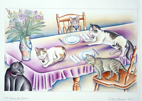 Han pasado catorce años desde la publicación de “Kitty City” y Judy Chicago tiene 80 años. Los dos gatos más jóvenes que adoptó en 2001, Pete y Re-Pete, tendrían ahora 19 años, una edad muy respetable. Algo nos dice que Judy y Ronald han seguido adoptando gatos; quizá ya no tengan seis, pero seguramente uno o dos.
