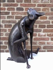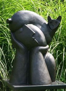 A pesar de los numerosos gatos incluidos en sus cuadros y esculturas, solo hemos encontrado fotos suyas con perros. Sin embargo, estos no aparecen en ninguna obra. Hay caballos, vacas, búhos y palomas, aunque nada comparable al número de gatos, solos o acompañados de una mujer o un hombre.