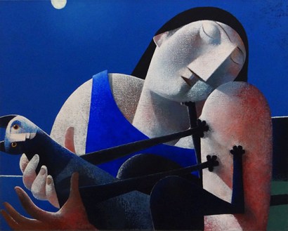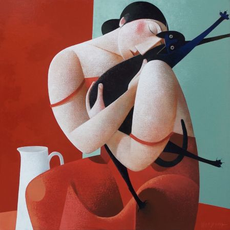 “Pinta con realismo estilizado, despojando a los personajes y a su entorno de todo lo superfluo. Su obra irradia belleza, equilibrio, paz y ternura”.
