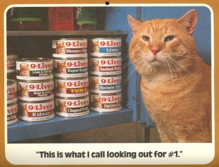 Según el adiestrador: “Saltó encima de la mesa y fue directamente hacia el director artístico, el pez gordo de la reunión, le dio un empujón con la cabeza y se sentó delante de él”. Parece ser que el director artístico, cuyo nombre no ha pasado a la historia, dijo: “Hemos encontrado al Clark Gable de los gatos”. Así fue como el primer gato Morris se convirtió en el representante de la marca 9Lives (en los países de habla inglesa, los gatos tienen 9 vidas, dos más que los nuestros). Protagonizó nada menos que 58 anuncios televisivos, y su imagen apareció en una infinidad de tazas, camisetas y otros objetos de merchandising.